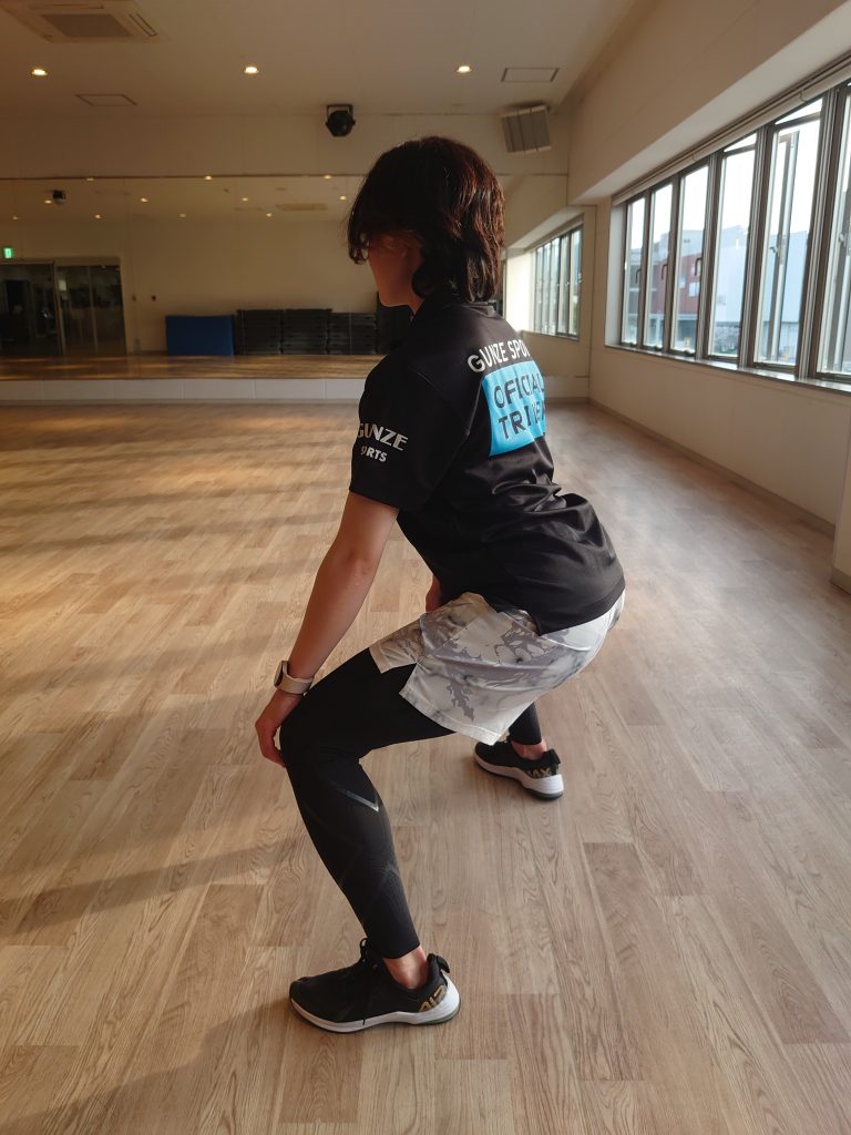 股関節からお尻を後ろに引くイメージで行いましょう!