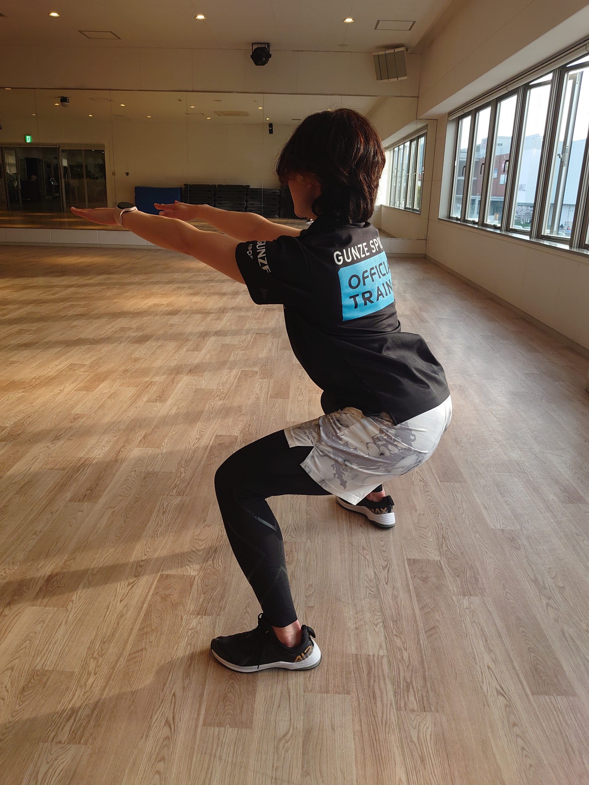 股関節からお尻を後ろに引くイメージで行いましょう!