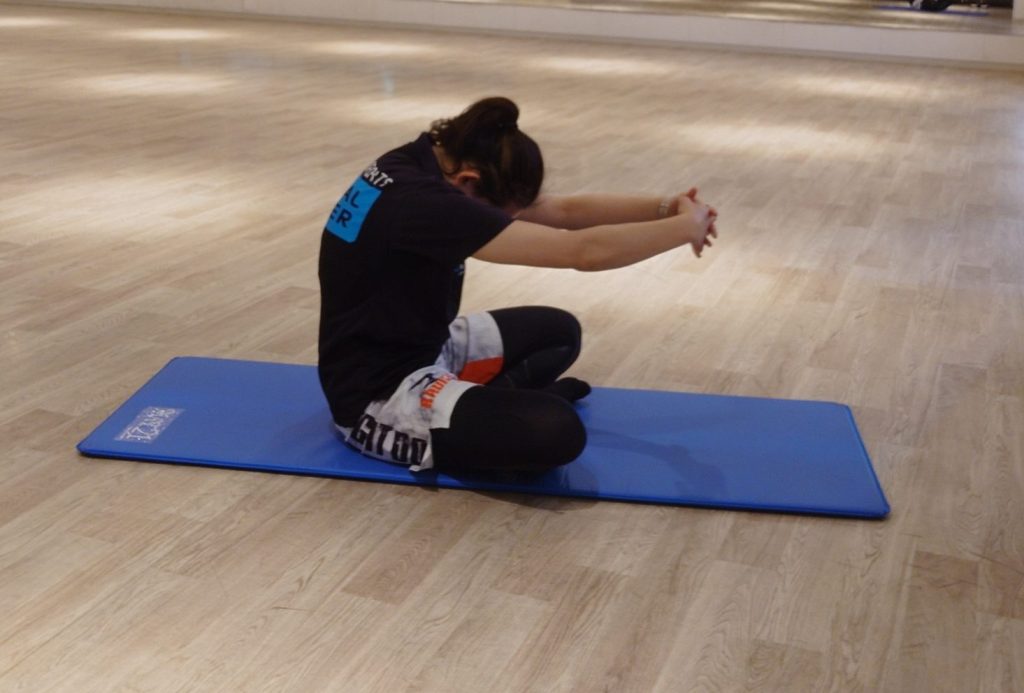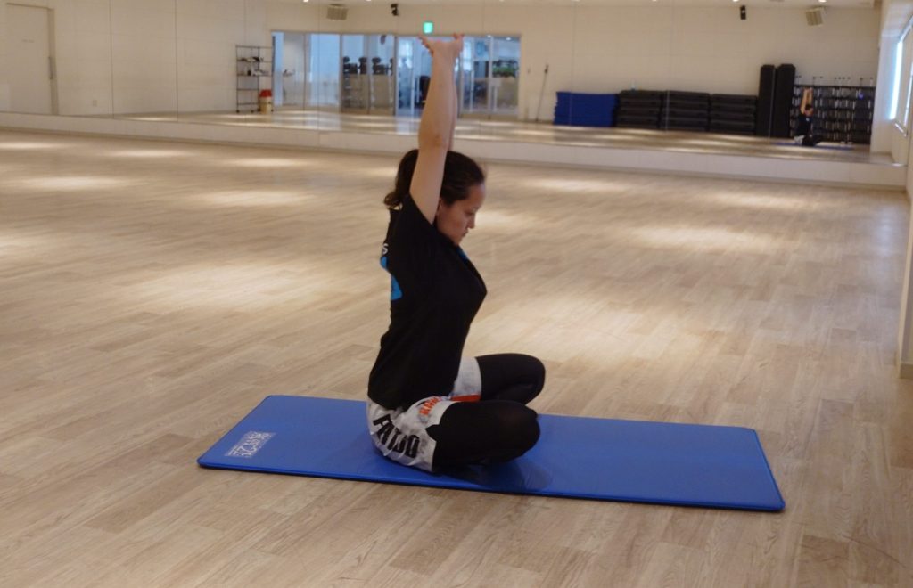 背中のストレッチをわきのしたや体側のストレッチを