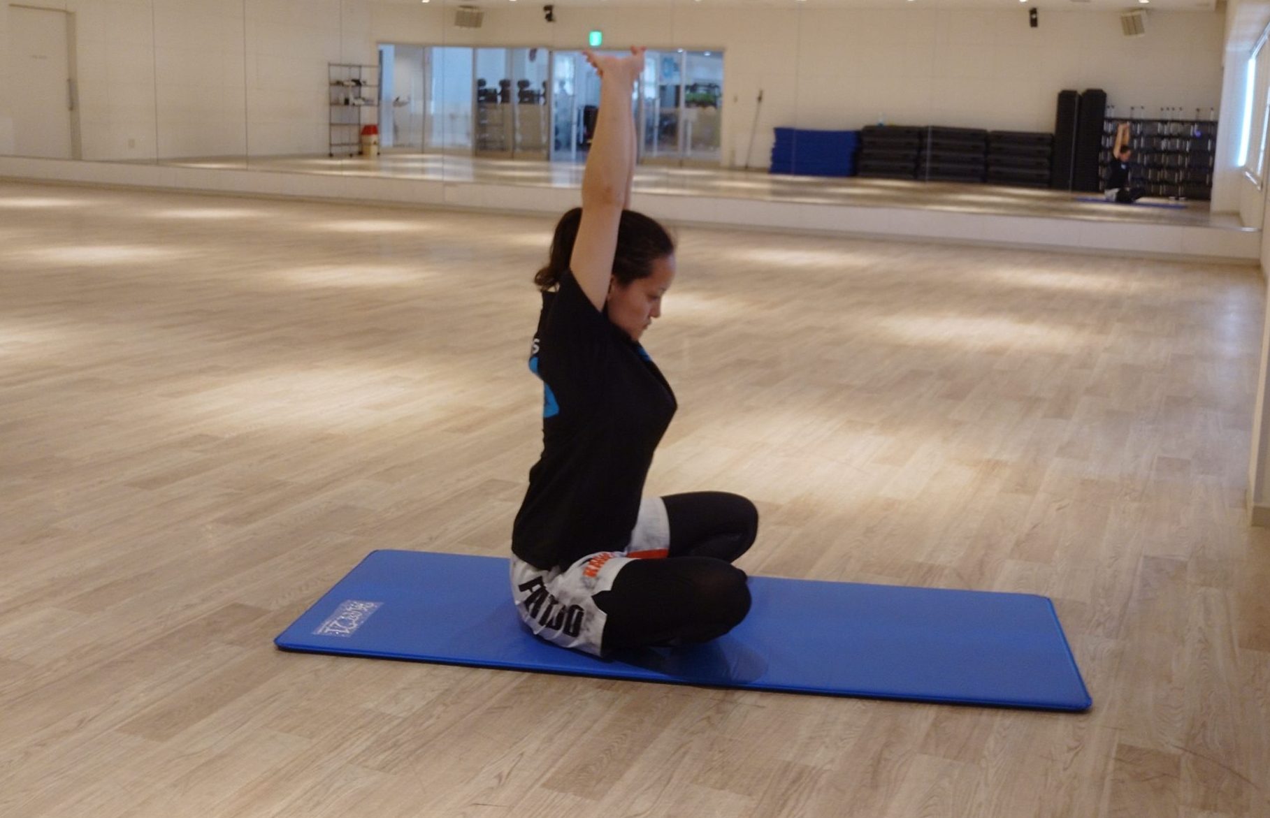 ・あぐらや正座など、楽な姿勢で床に座る。