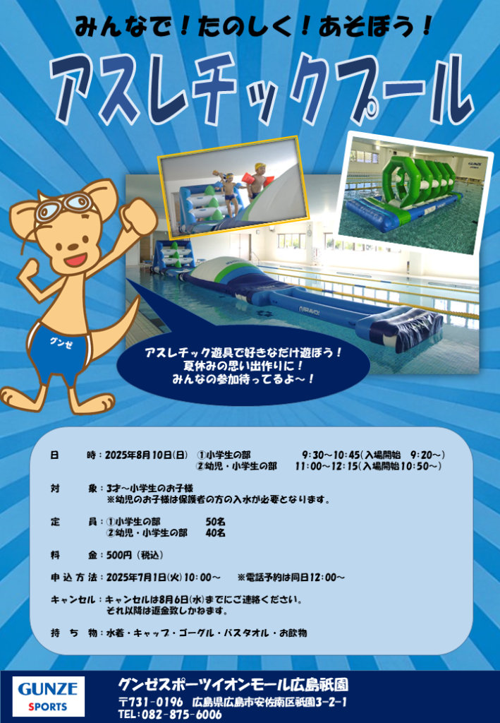 8/10㈰にアスレチックプールイベントを開催いたします!