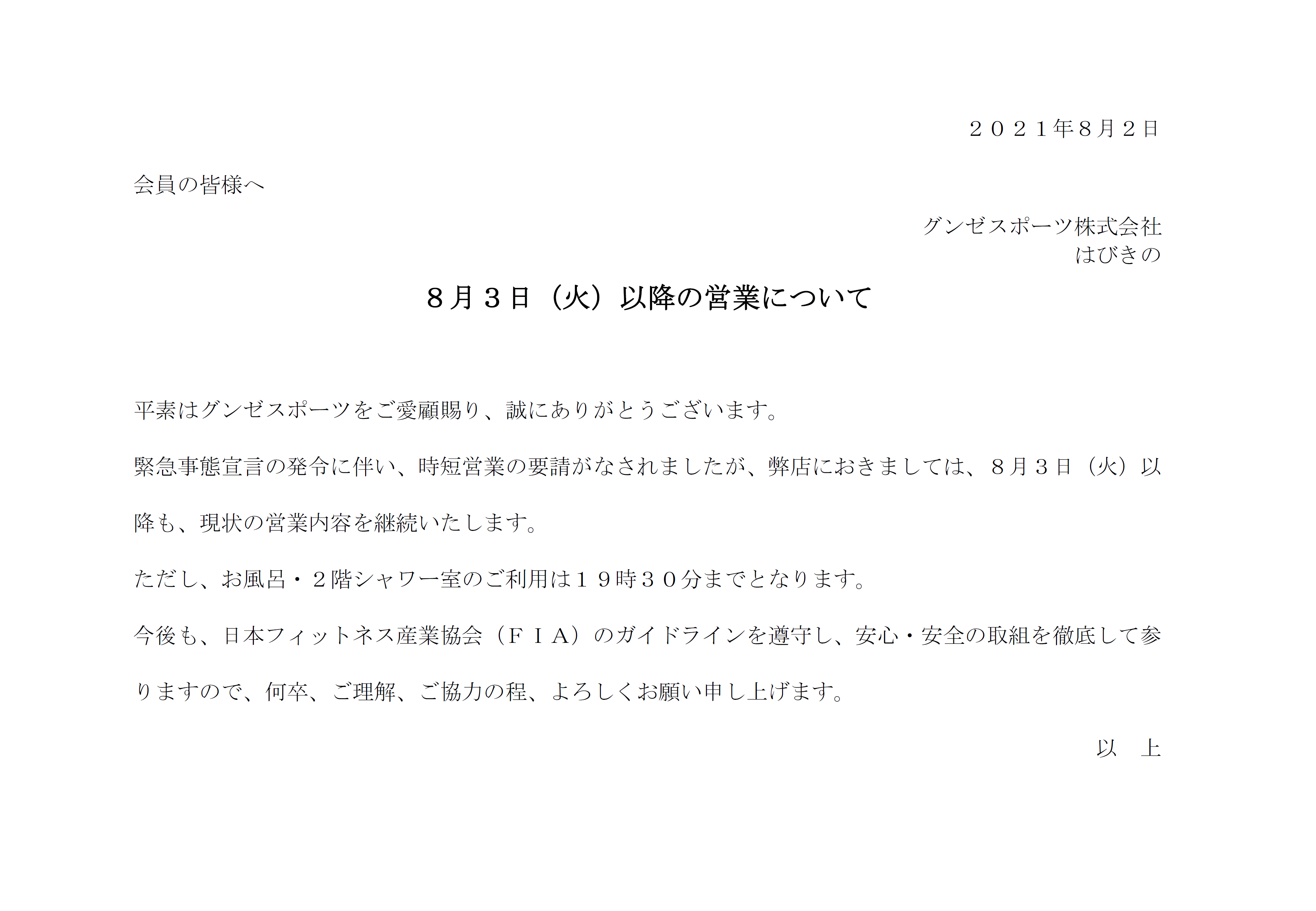【重要】8/3㊋以降の営業につきまして