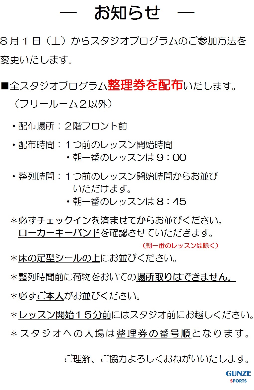 グンゼスポーツはびきのからのお知らせ