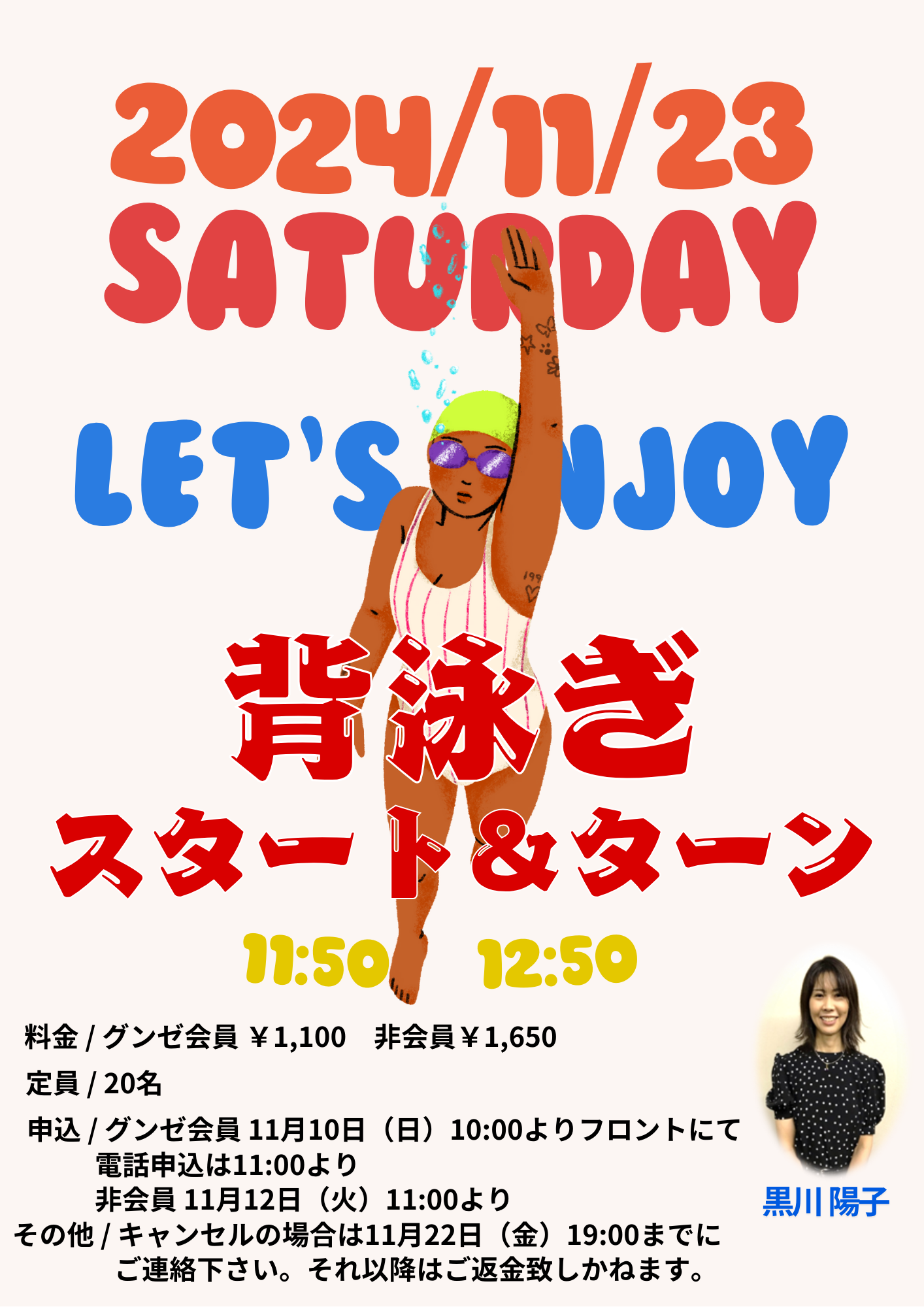 黒川インストラクター背泳ぎスタート&ターンプレミアムレッスン詳細