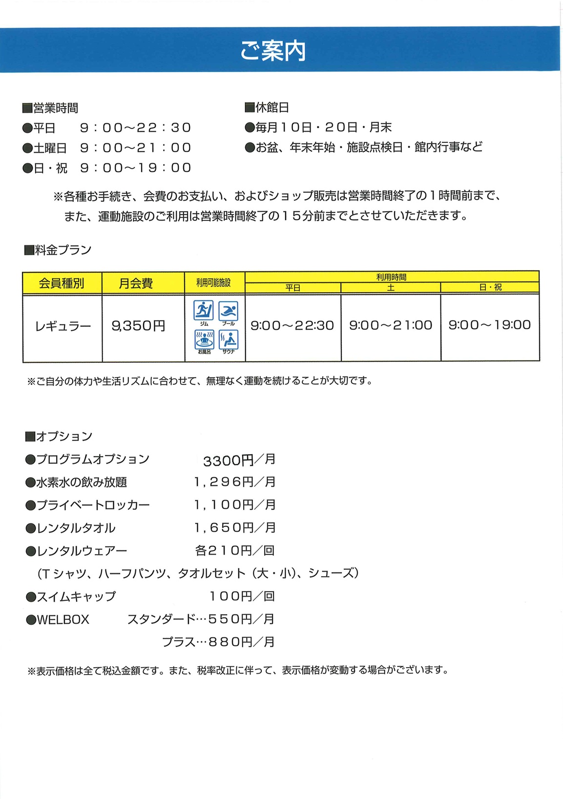 こちらはフィットネス会員様向けのご利用ガイドブックです。 内容をご確認くださいますようお願いいたします。