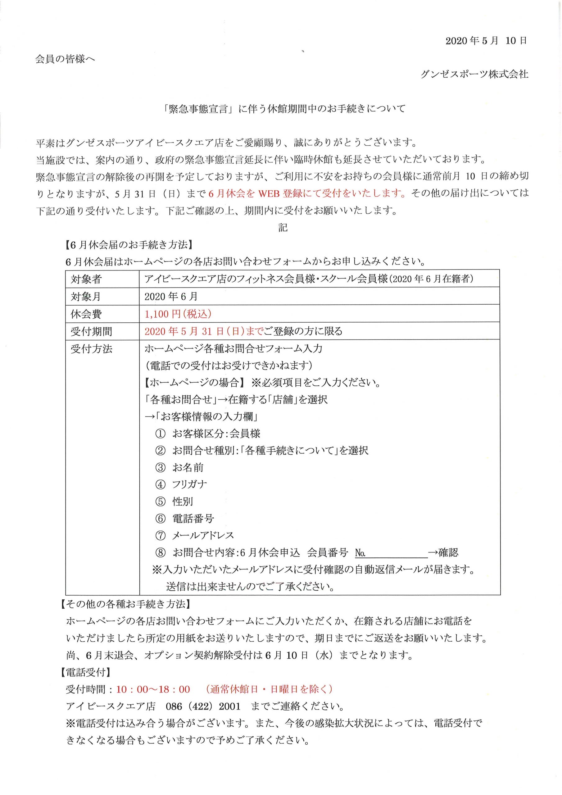 【重要】「緊急事態宣言」に伴う休館期間中のお手続きについて【5/10更新】