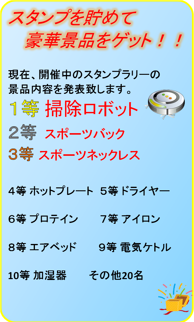 毎日通ってスタンプを集め豪華景品を当てましょう!!