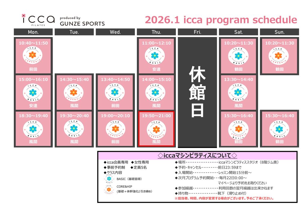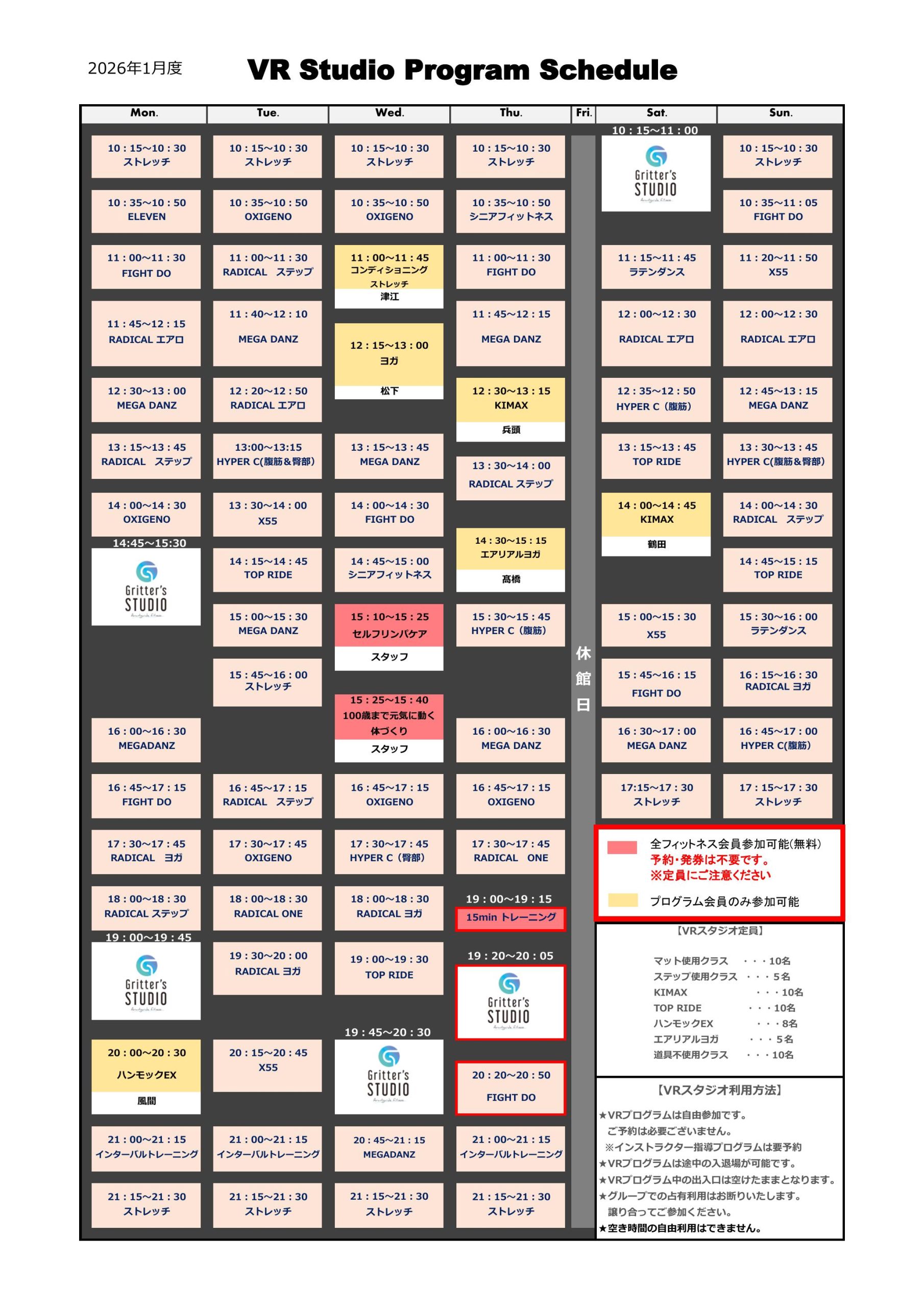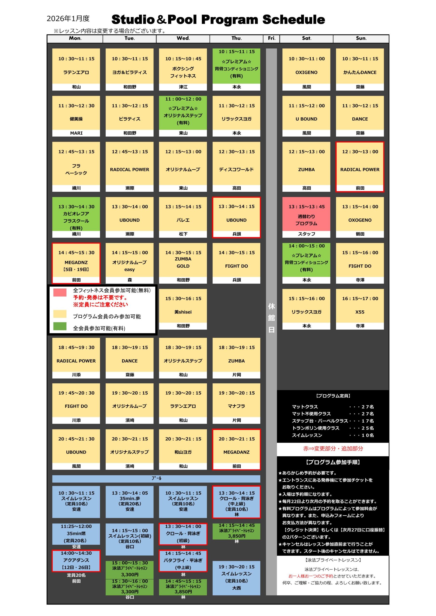 2026年1月のプログラムタイムテーブルに変更がございますのでご案内いたします。
