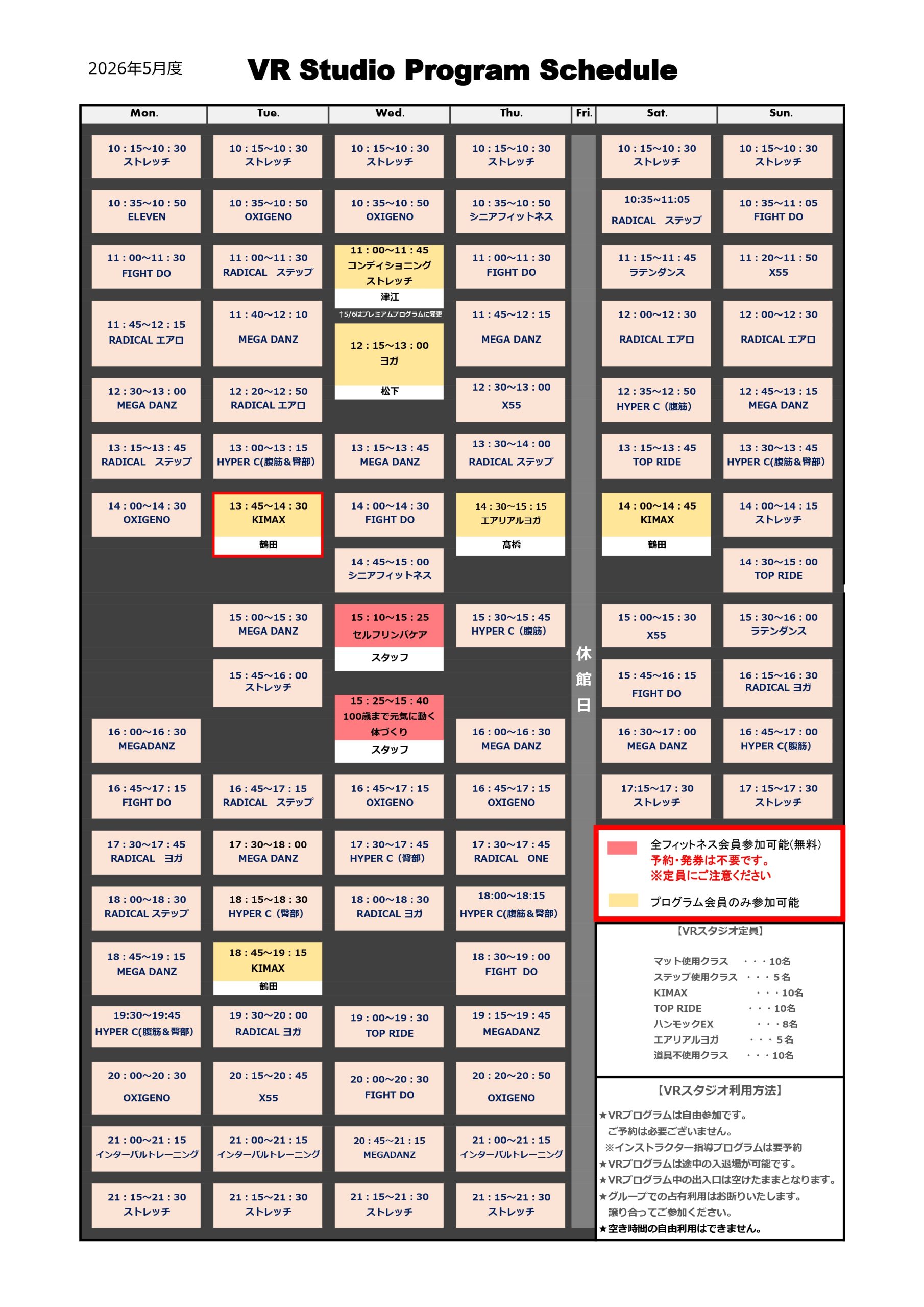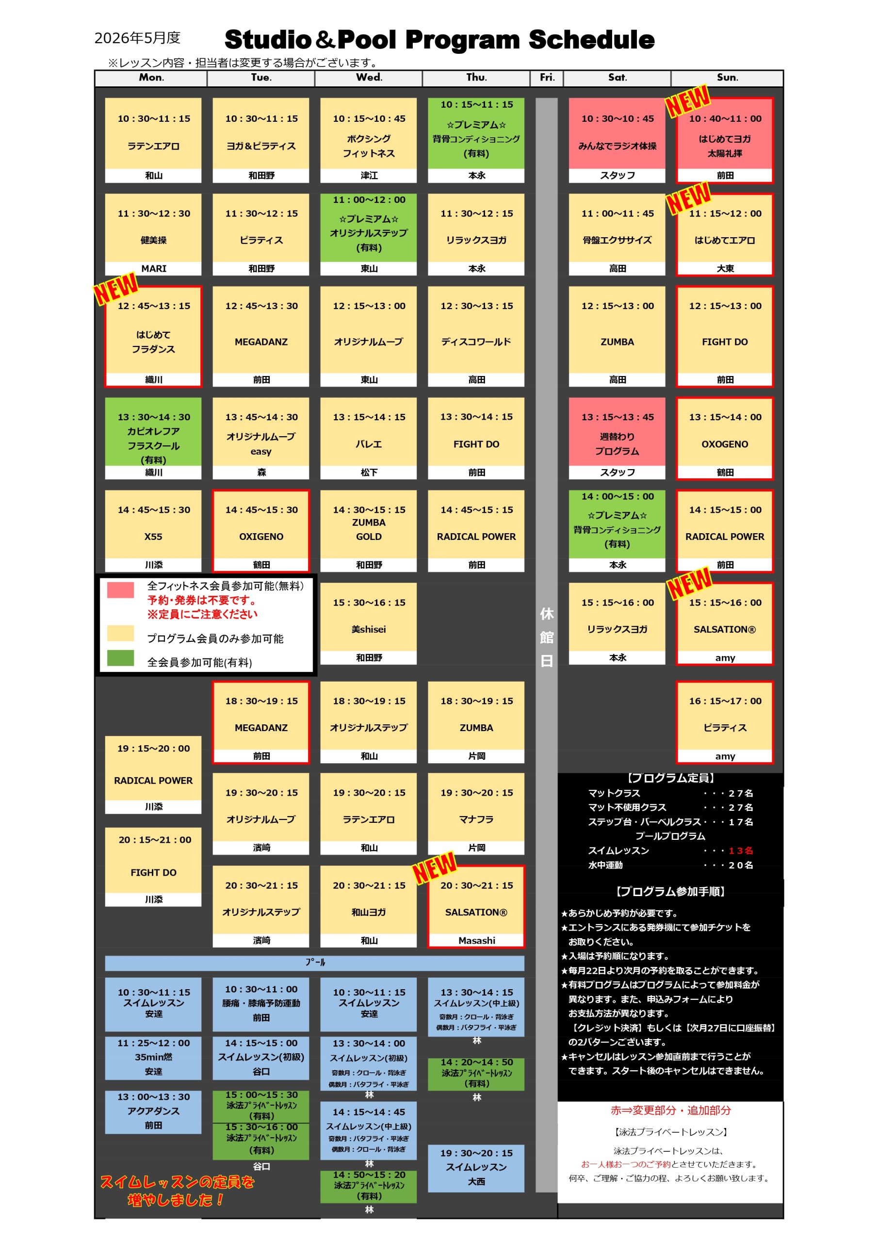 5月プログラムタイムテーブルの変更がございますのでご案内いたします。