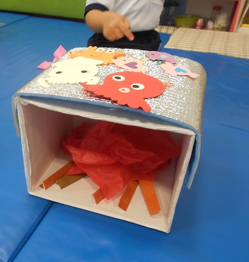 ・・・とお花紙をふわっと丸めて箱の中にポイッ