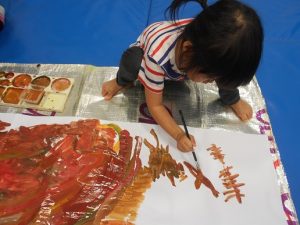 先日大きな紙にCちゃんと絵具を塗りました~♪