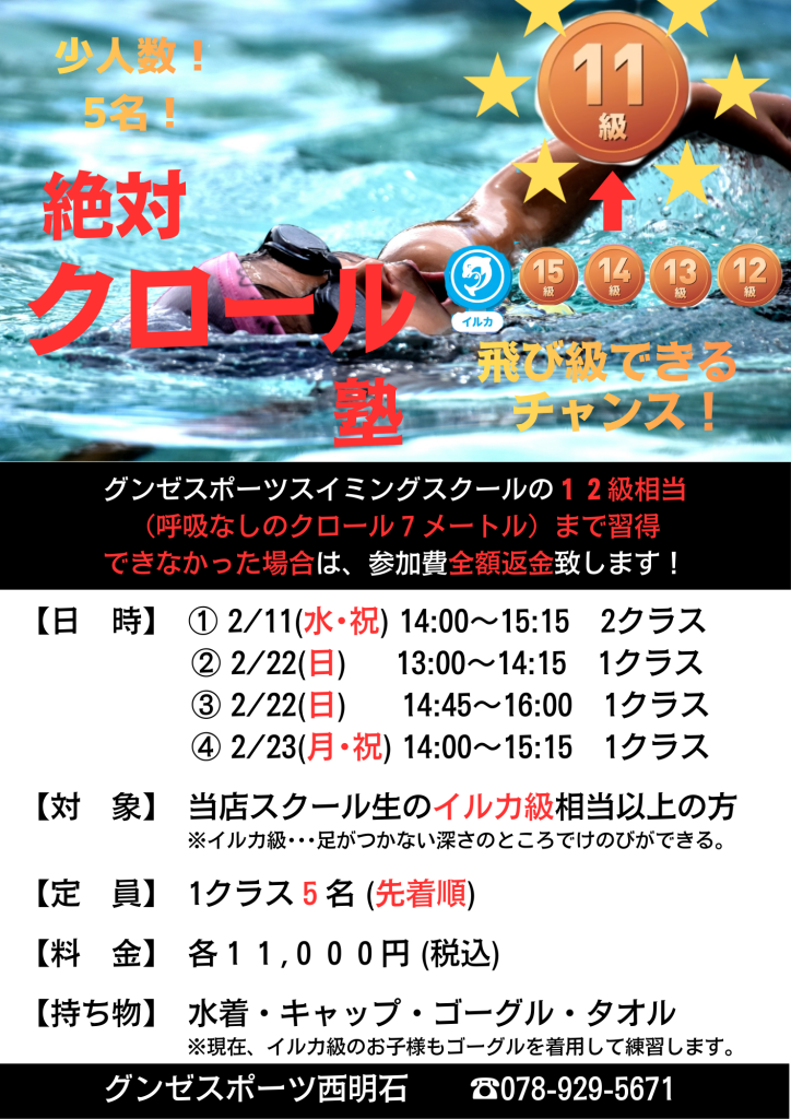 【持ち物】水着・キャップ・ゴーグル・バスタオル