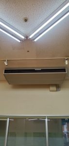 ⑤空調に空間除菌剤を設置し、人体に安全なレベルで空間除菌を行っています。