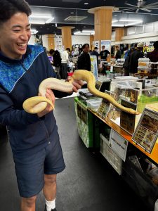 生き物ふれあいコーナーで、昆虫やヘビ、