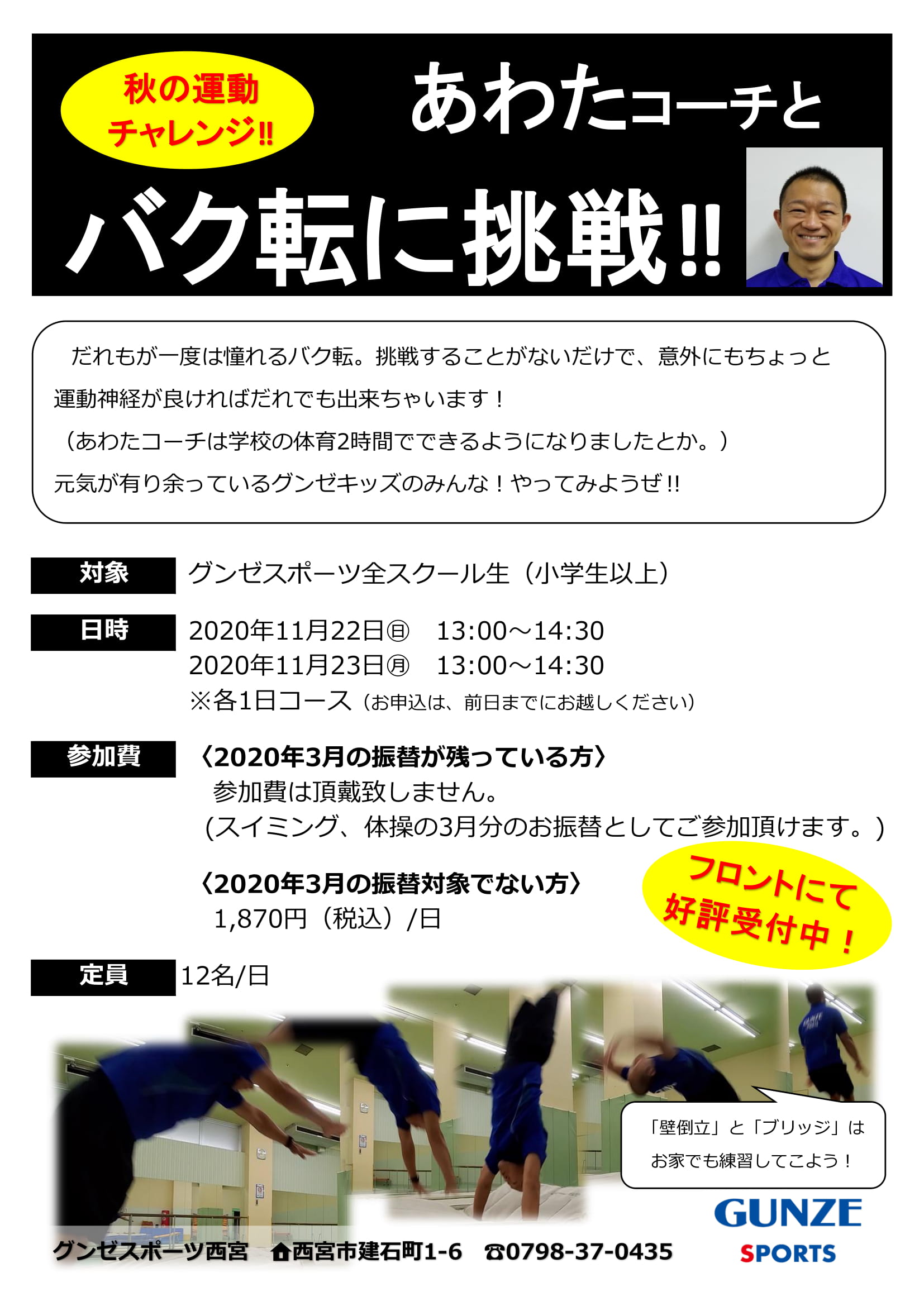 水曜日から受付開始したバク転挑戦企画。