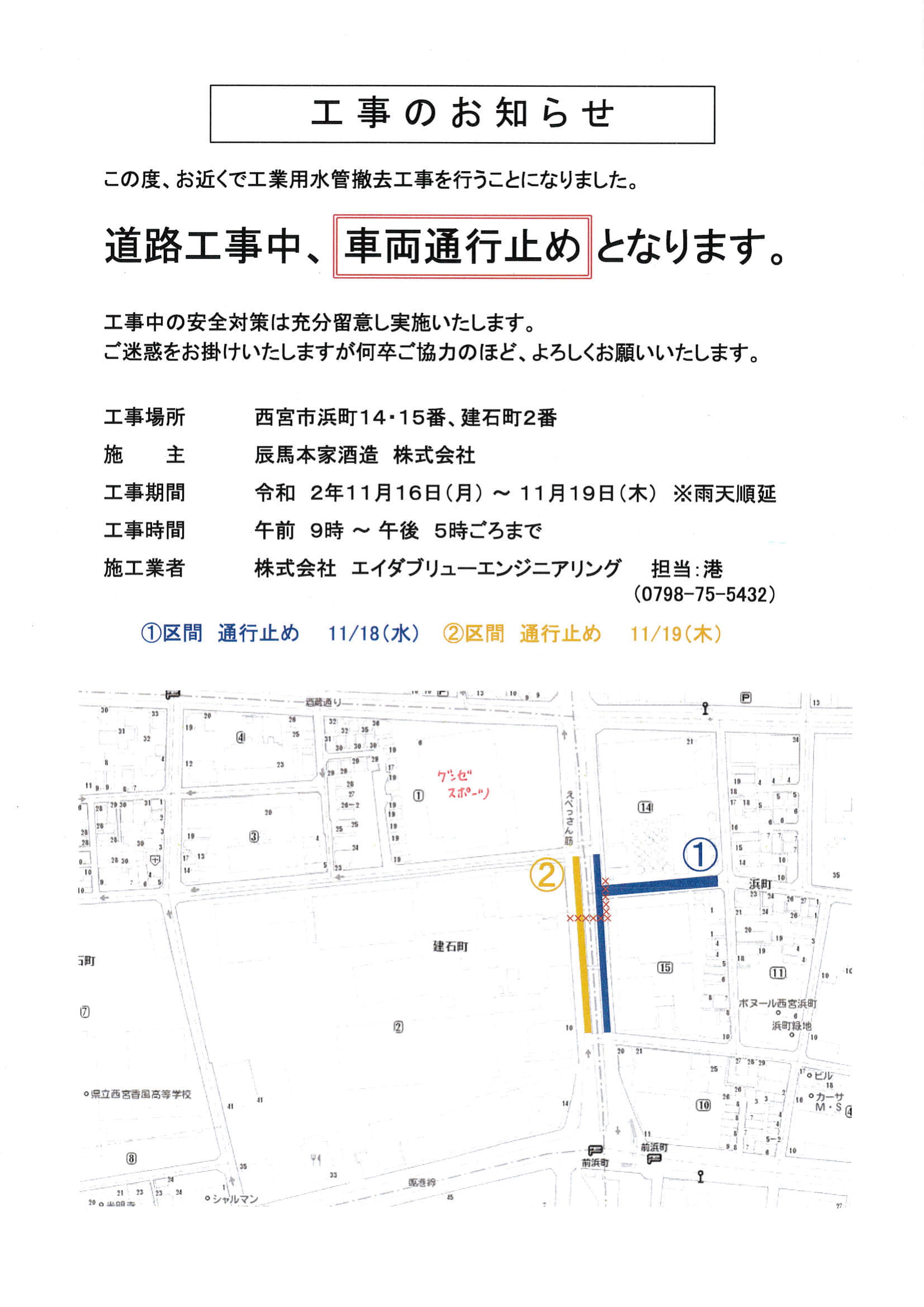 近隣一部車両通行止めのお知らせ