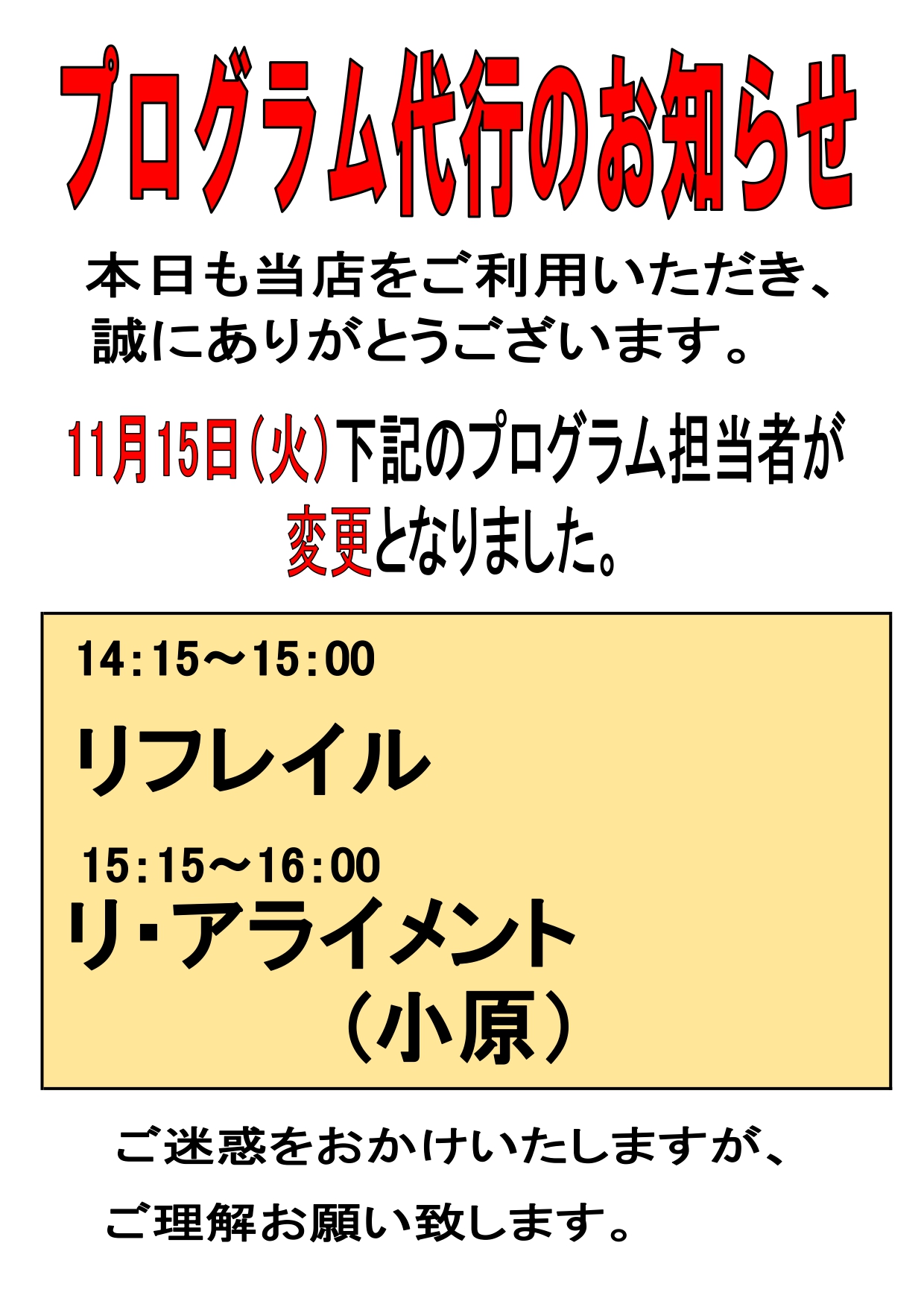 【11月15日(火)スタジオプログラム代行のお知らせ】
