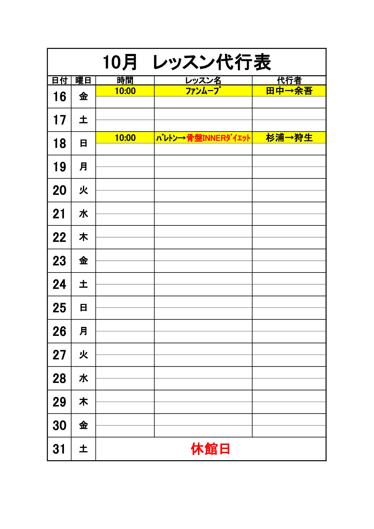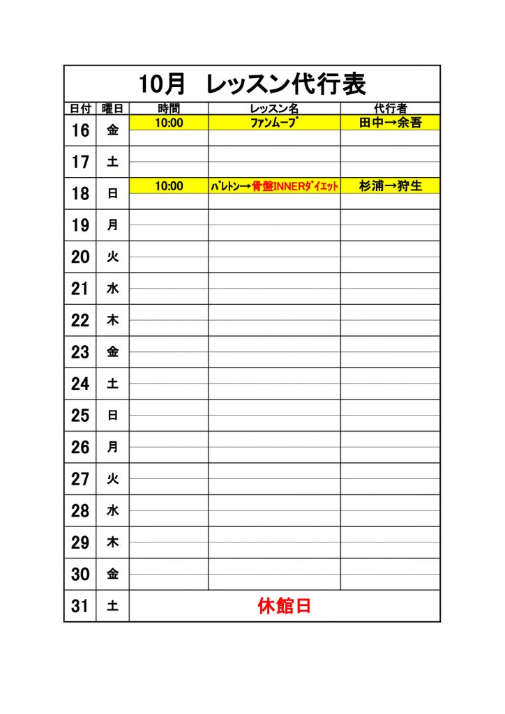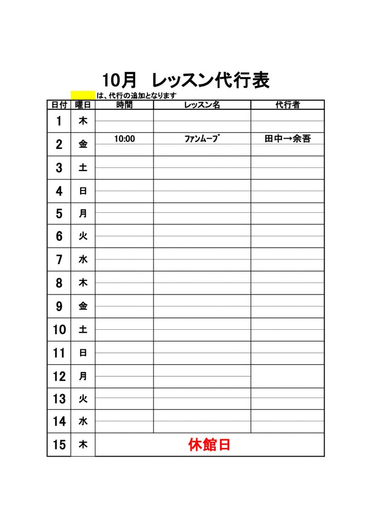2020年10月代行のお知らせ【10/1更新】