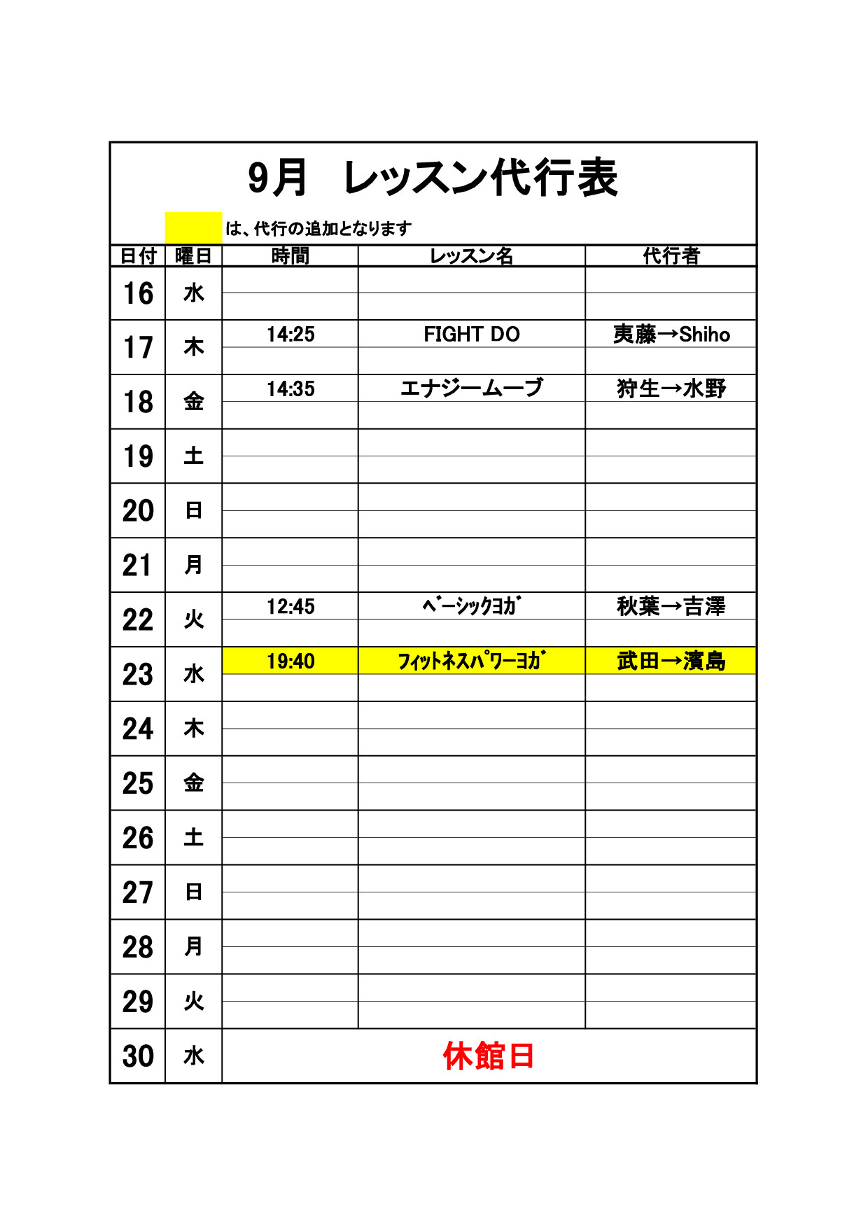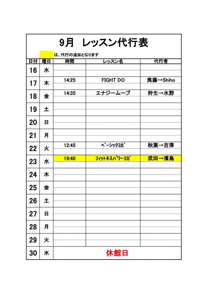 2020年9月代行のお知らせ【9/12更新】