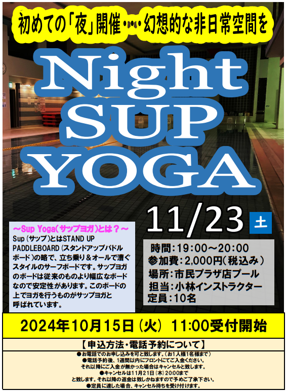 サップヨガは夜のプール🌙で開催!