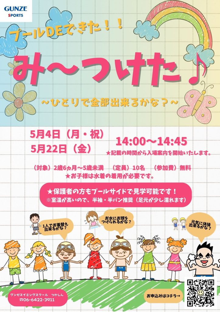 「み~つけた♪」では、プールに入るまでの流れからチャレンジ形式で挑戦する事が出来ます!