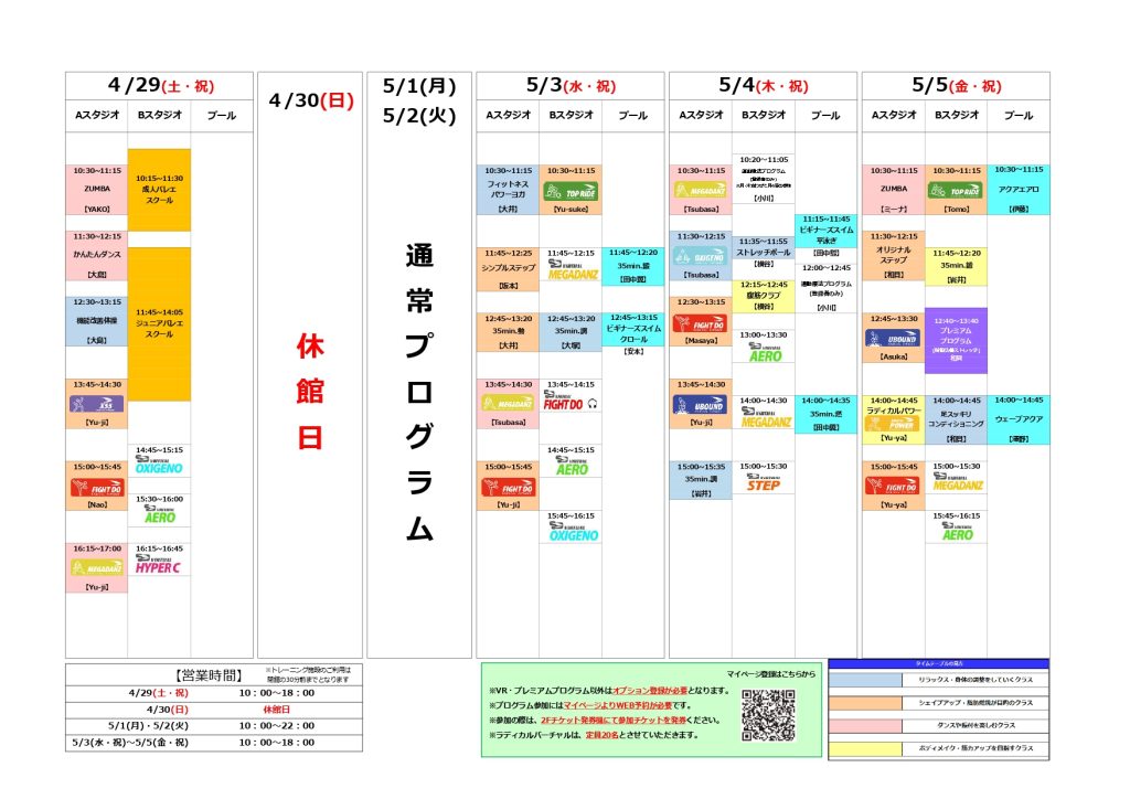 ☆ゴールデンウィーク特別プログラムのお知らせ☆