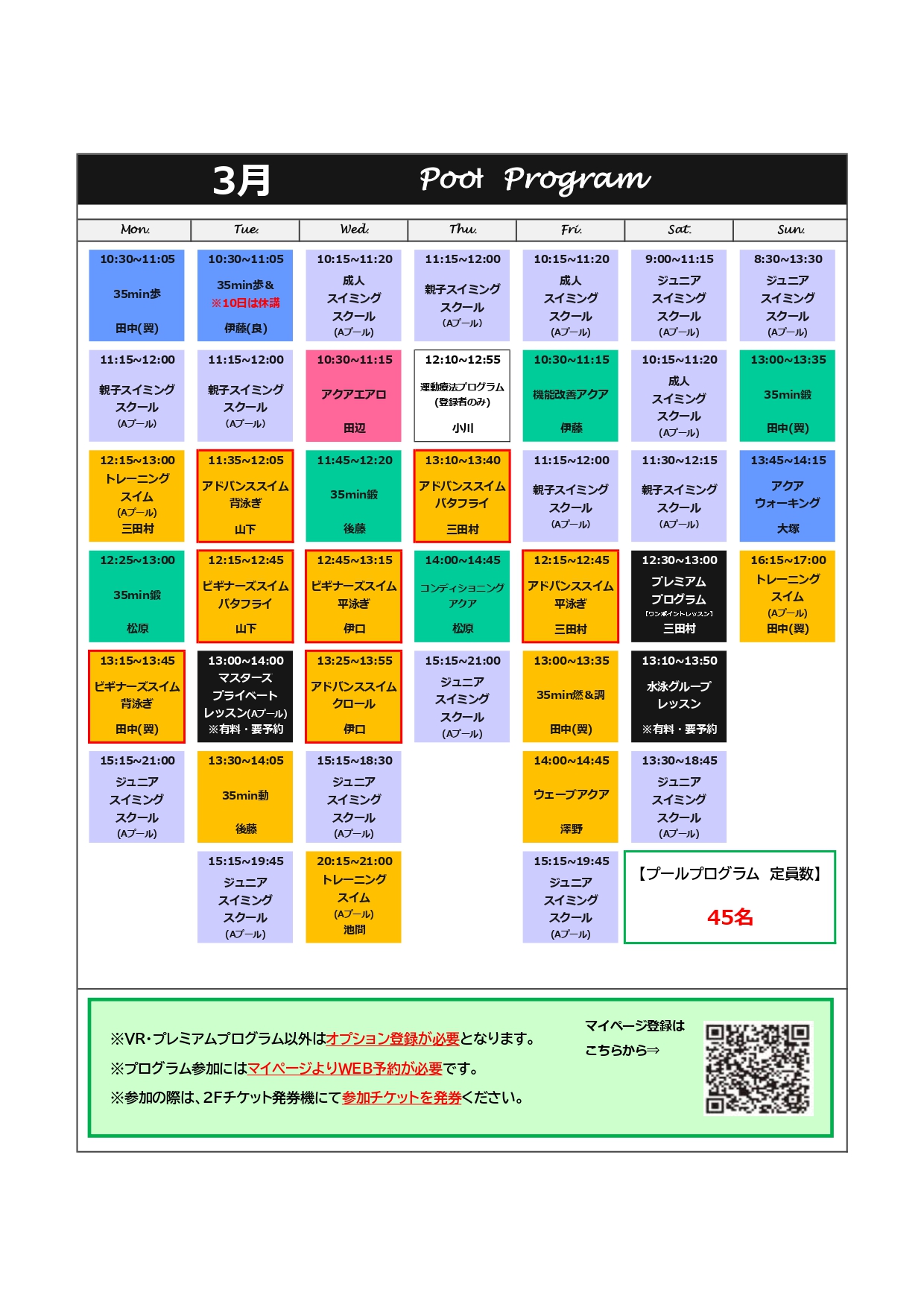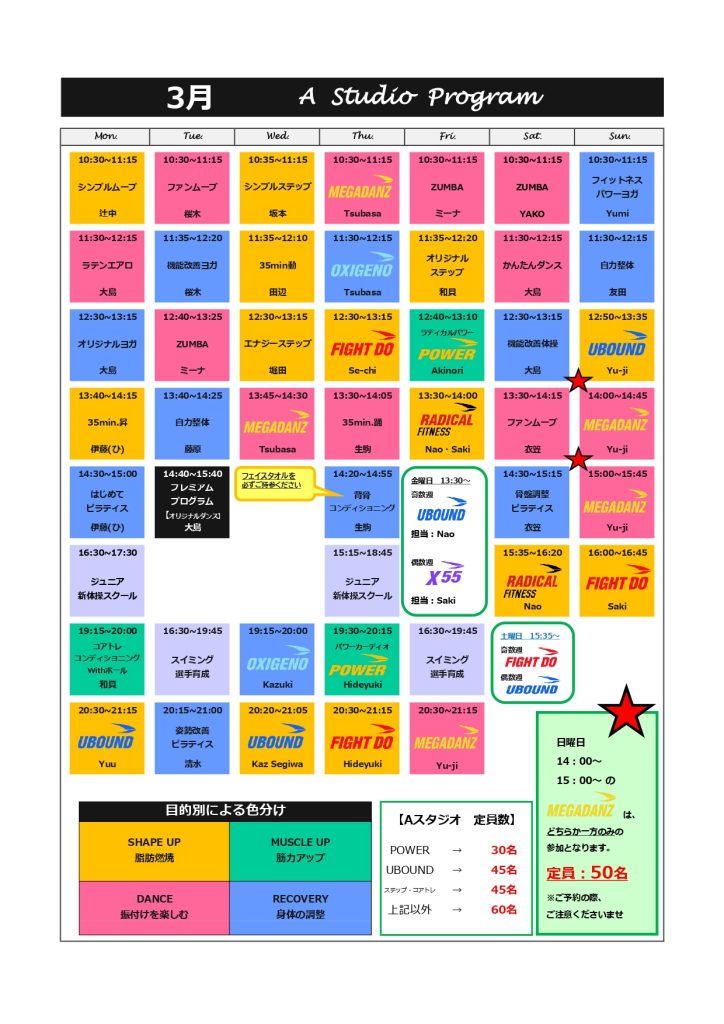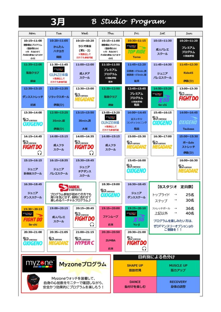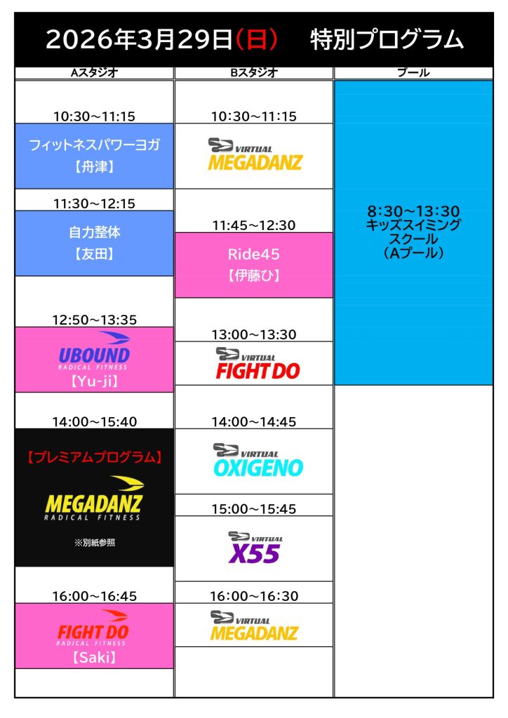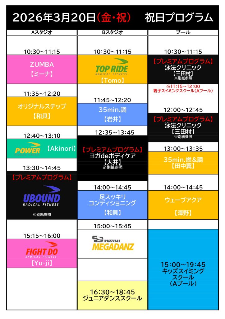 【3月プログラム】タイムスケジュール・祝日,特別プログラム