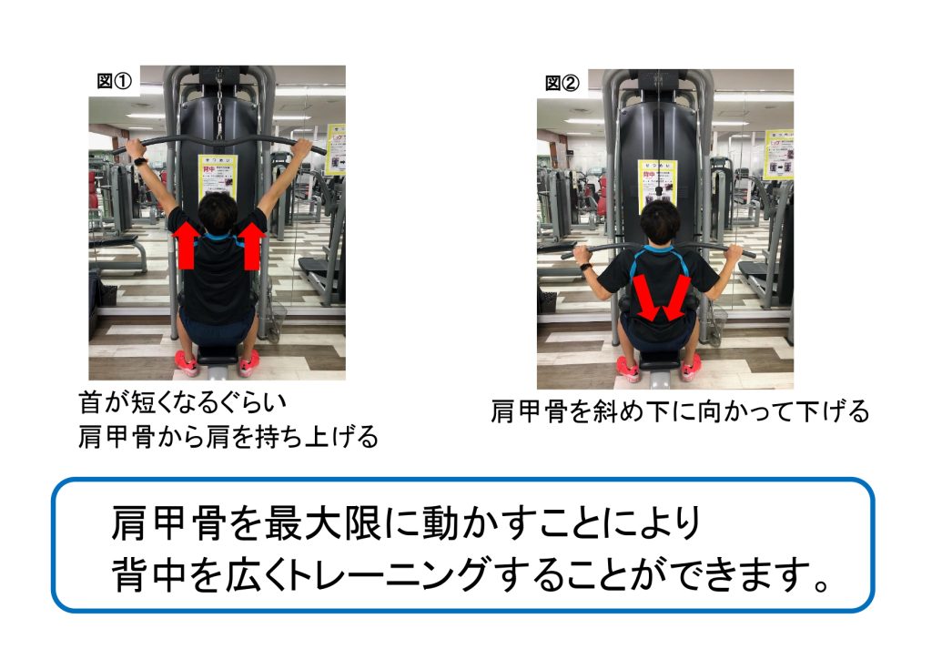 斜め下に肩甲骨を下ろす(図②)ことを意識するだけで