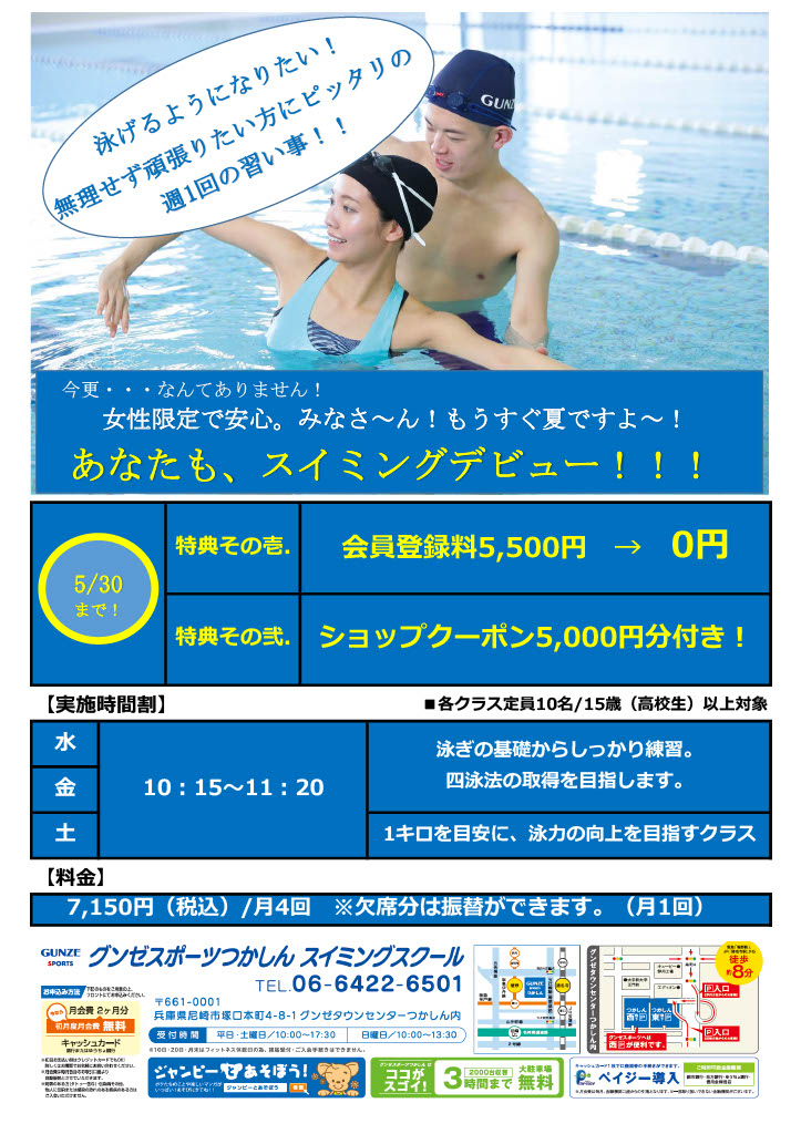 その中の1つ!【女性限定 スイミングスクール】絶賛キャンペーン中!