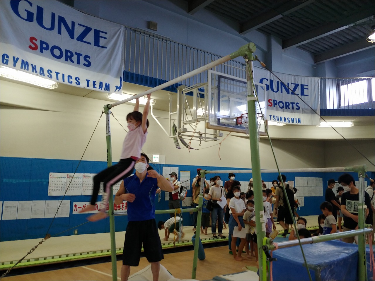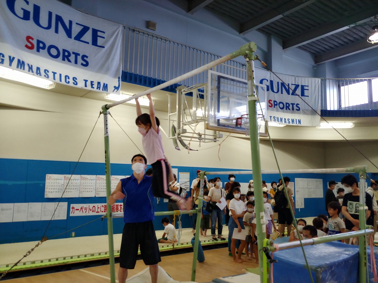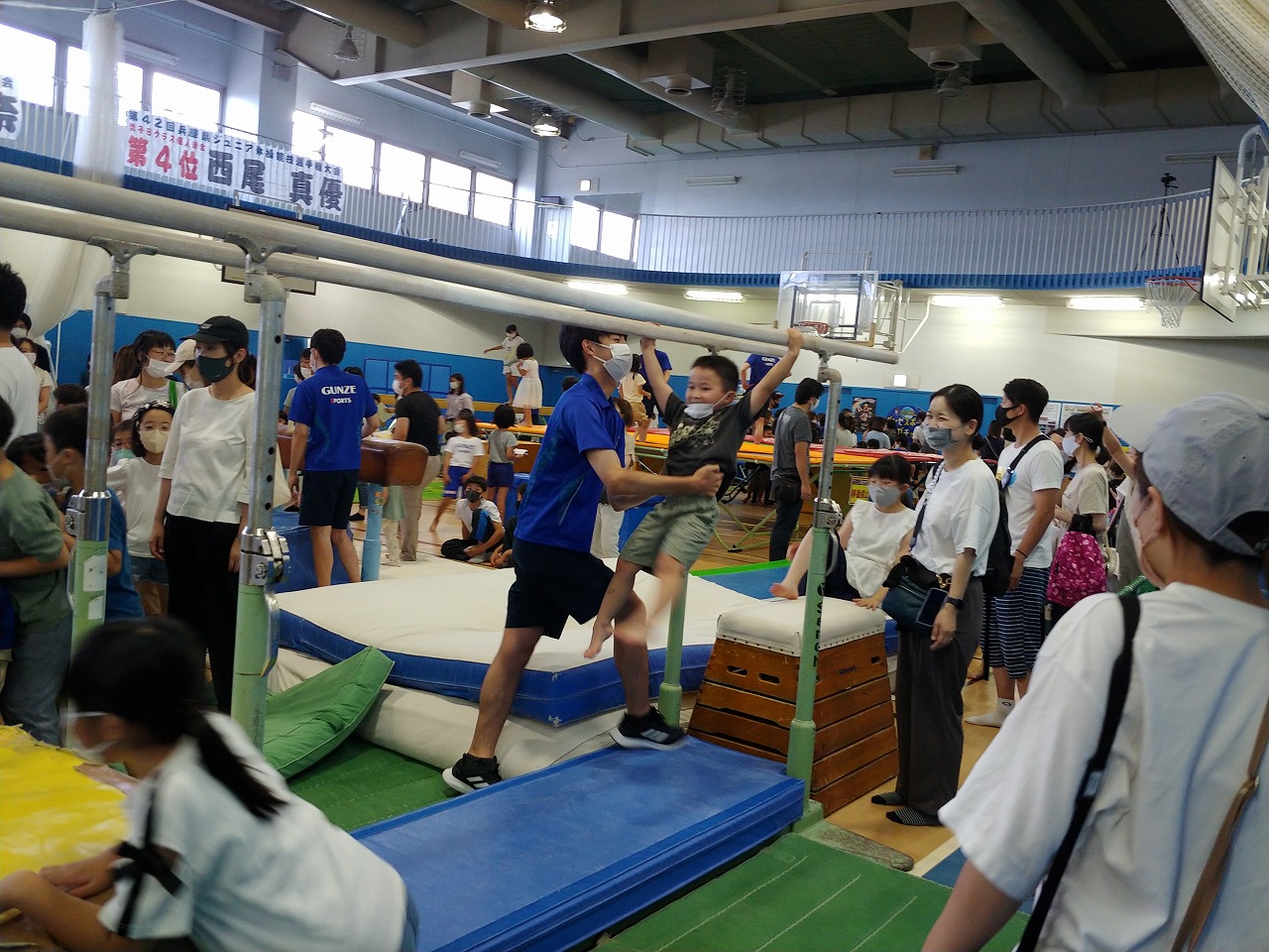 節目に、トップアスリートの技披露や、大学で現役選手を続けているコーチ(グンゼ卒業生)にも技を披露してもらい、体操の迫力を色んな視点で体験してもらうことができたと思います。