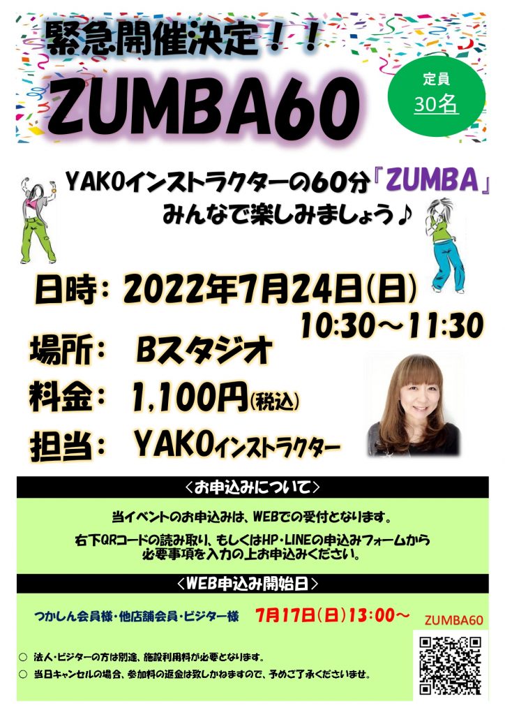 7/24(日) 【プレミアムプログラム】『ZUMBA60』緊急開催決定!