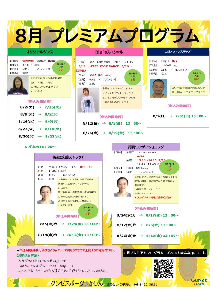 8月 『プレミアムプログラム・イベント』の申込みはこちらから☆
