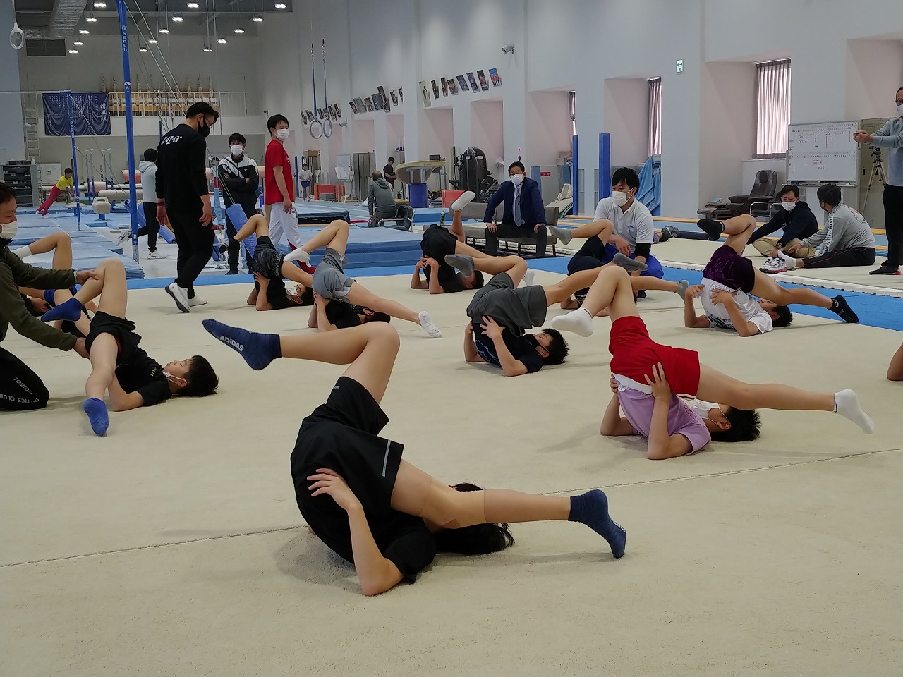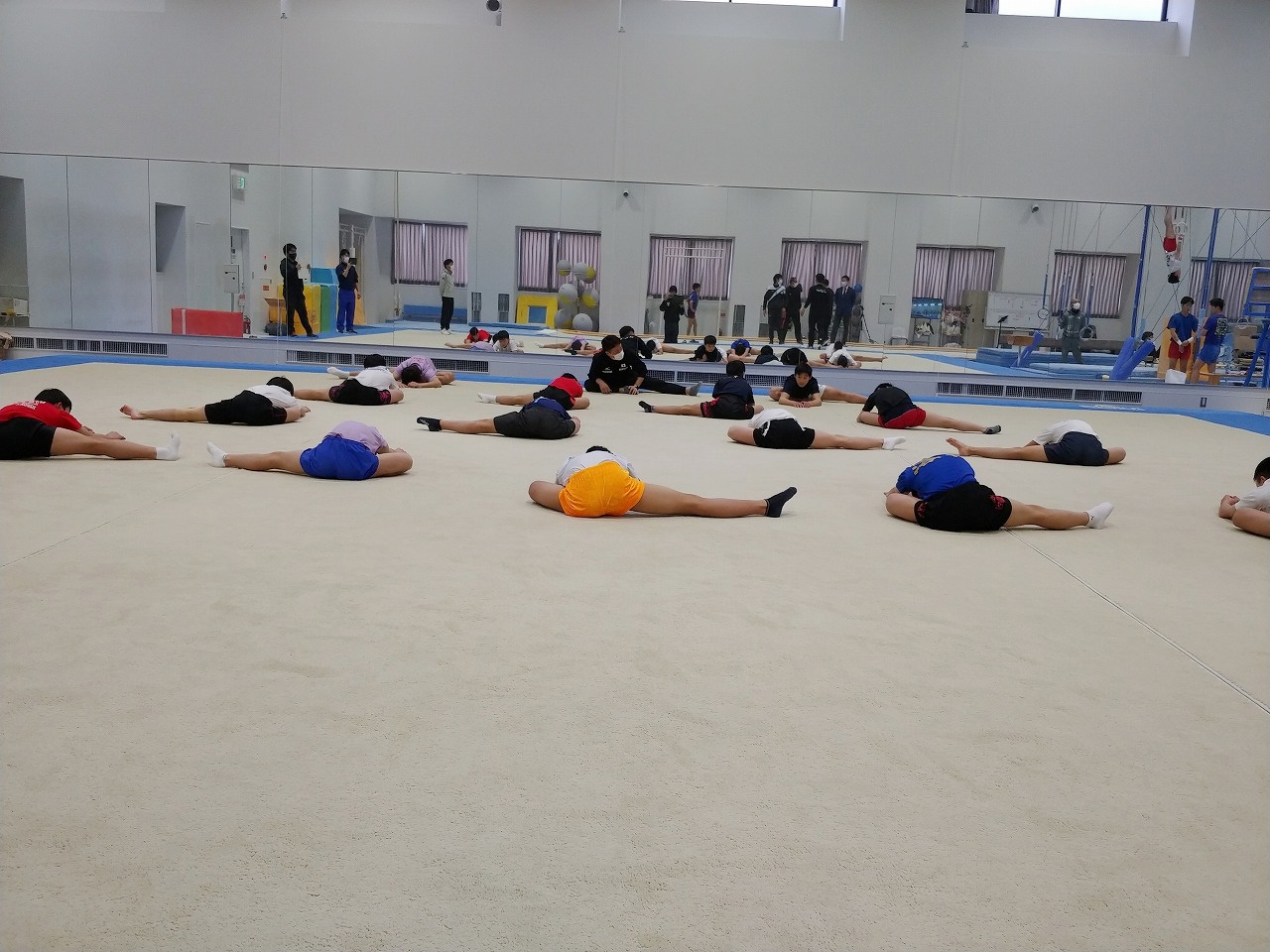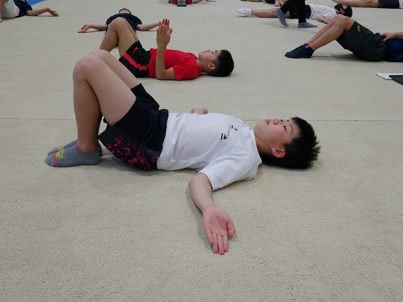 初日から日本体操協会強化部員の先生方から細かい姿勢やトレーニング方法、練習方法の指導を受けつつ、時間をかけて体づくりをしていく大切さを教わりました。