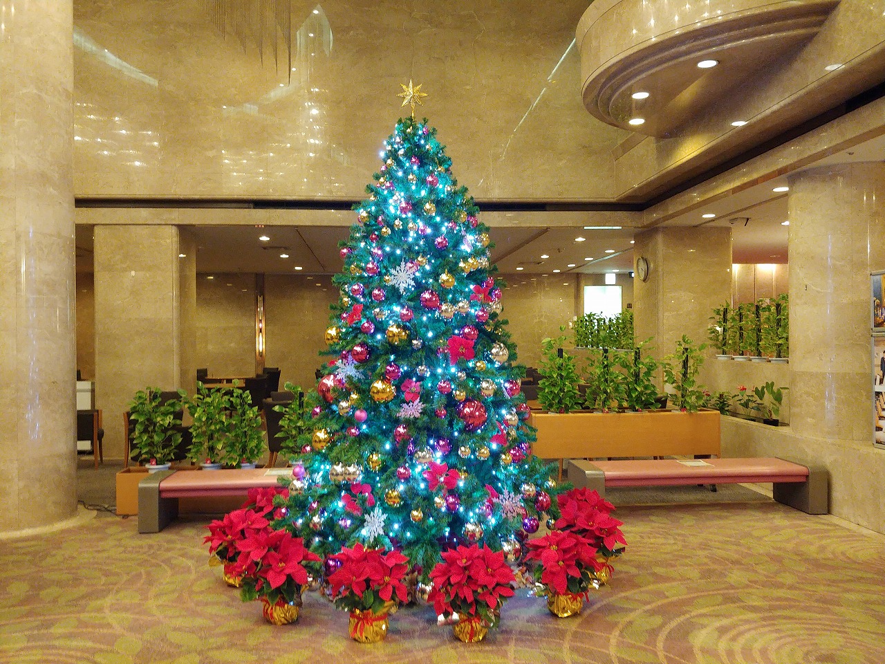 入るとクリスマスツリーが 全員でミーティング 懇親会では手押し相撲!負けました。。。