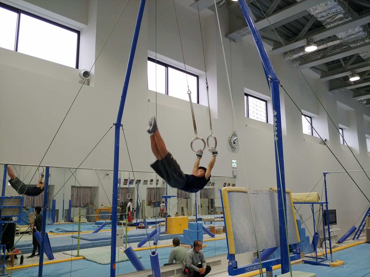 つり輪のスイング~ 跳馬の練習! 全員で集合写真