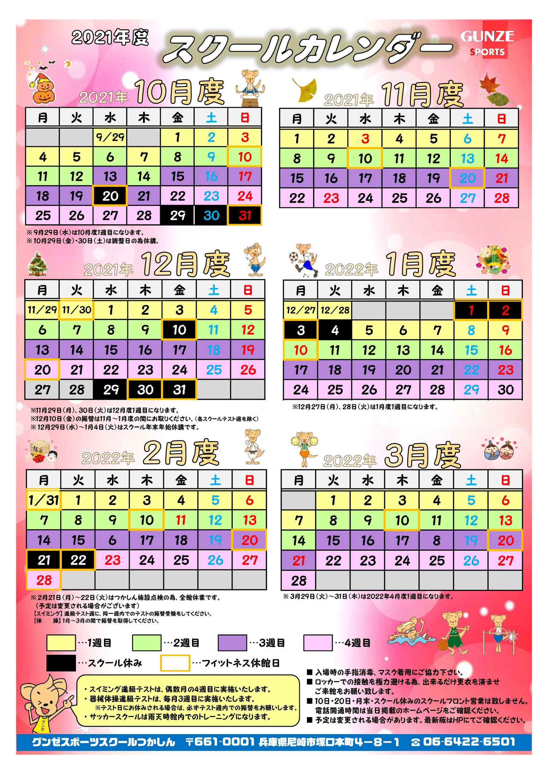 【スクール】2021年度後期(10月~3月)カレンダー掲載