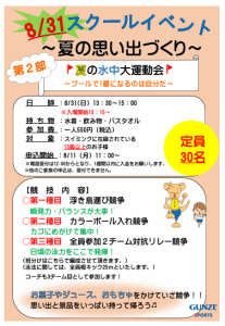 8/31(日)にスクールイベントを実施いたします!