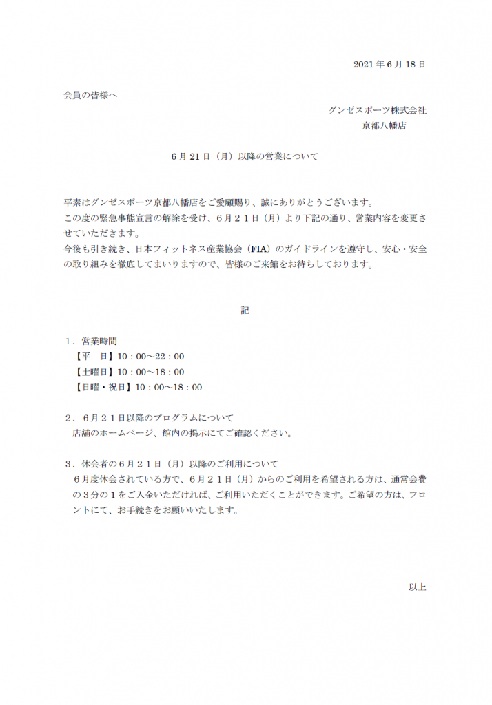 | 営業時間 | 月~金/10:00~22:00、土/10:00~18:00、日・祝日/10:00~18:00 ※ご入会受付時間は営業開始1時間後から営業終了2時間前までとなります。 |