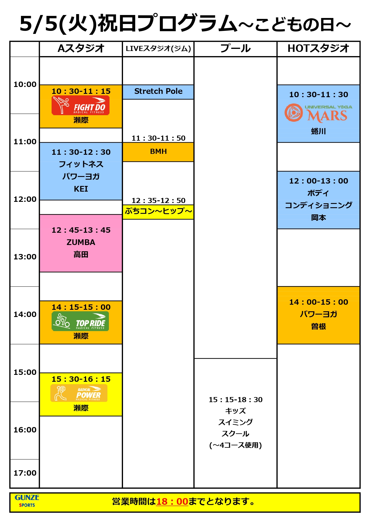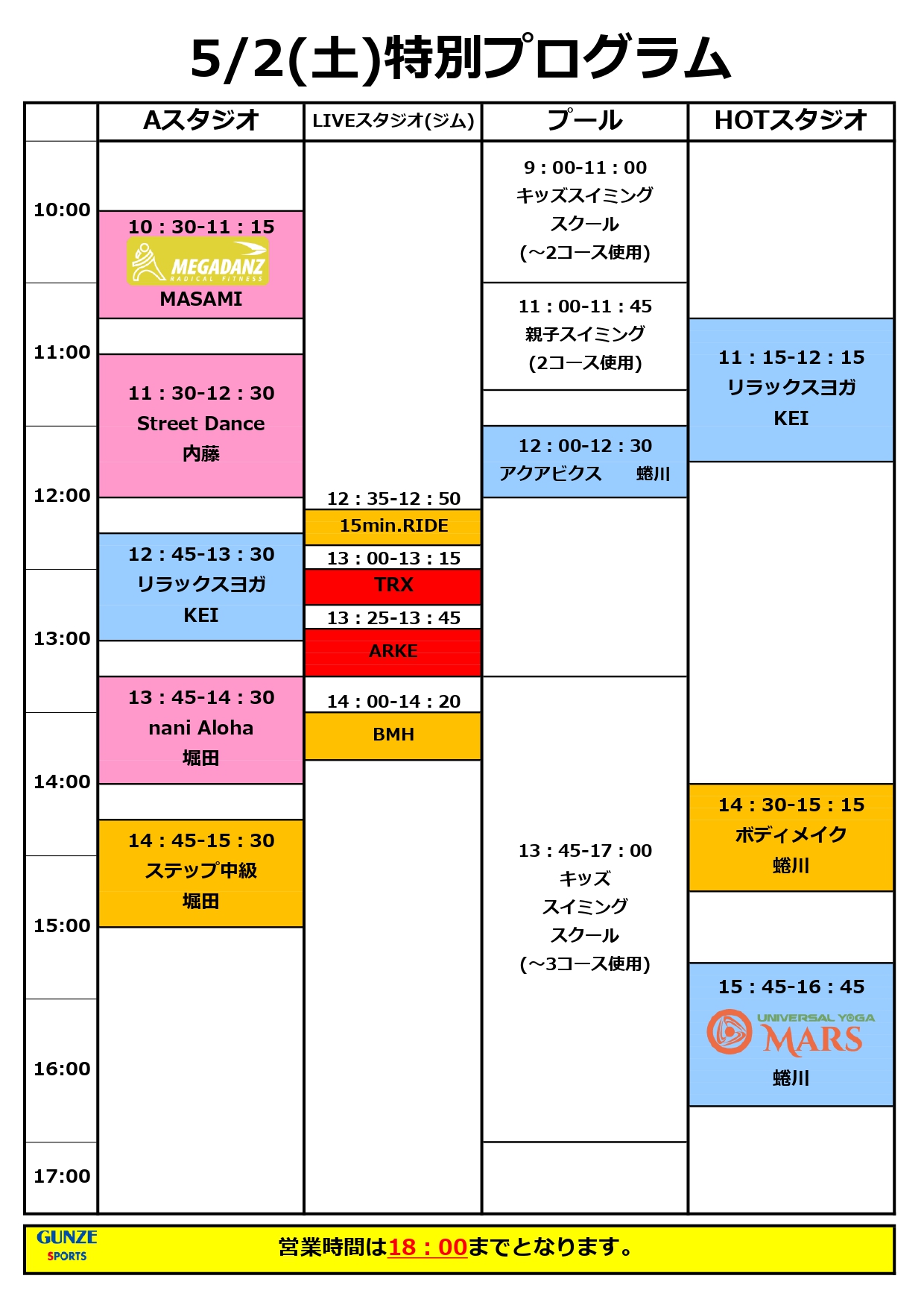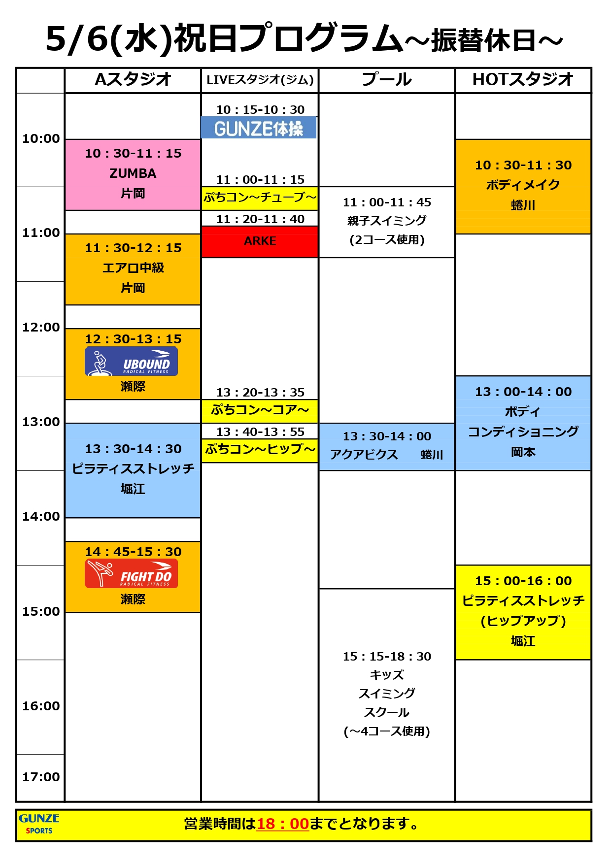 4/29㊌・5/2㊏~5/6㊌の6日間は