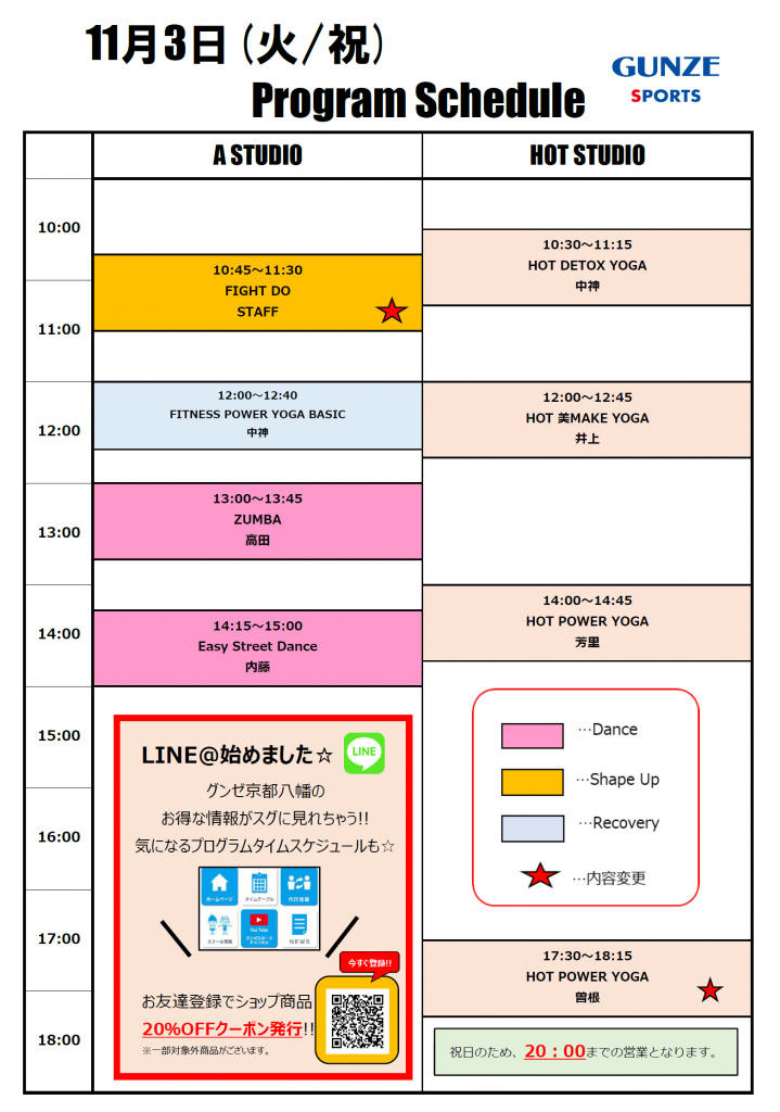 11月3日㊋は祝日プログラム!!詳しくはコチラ!!