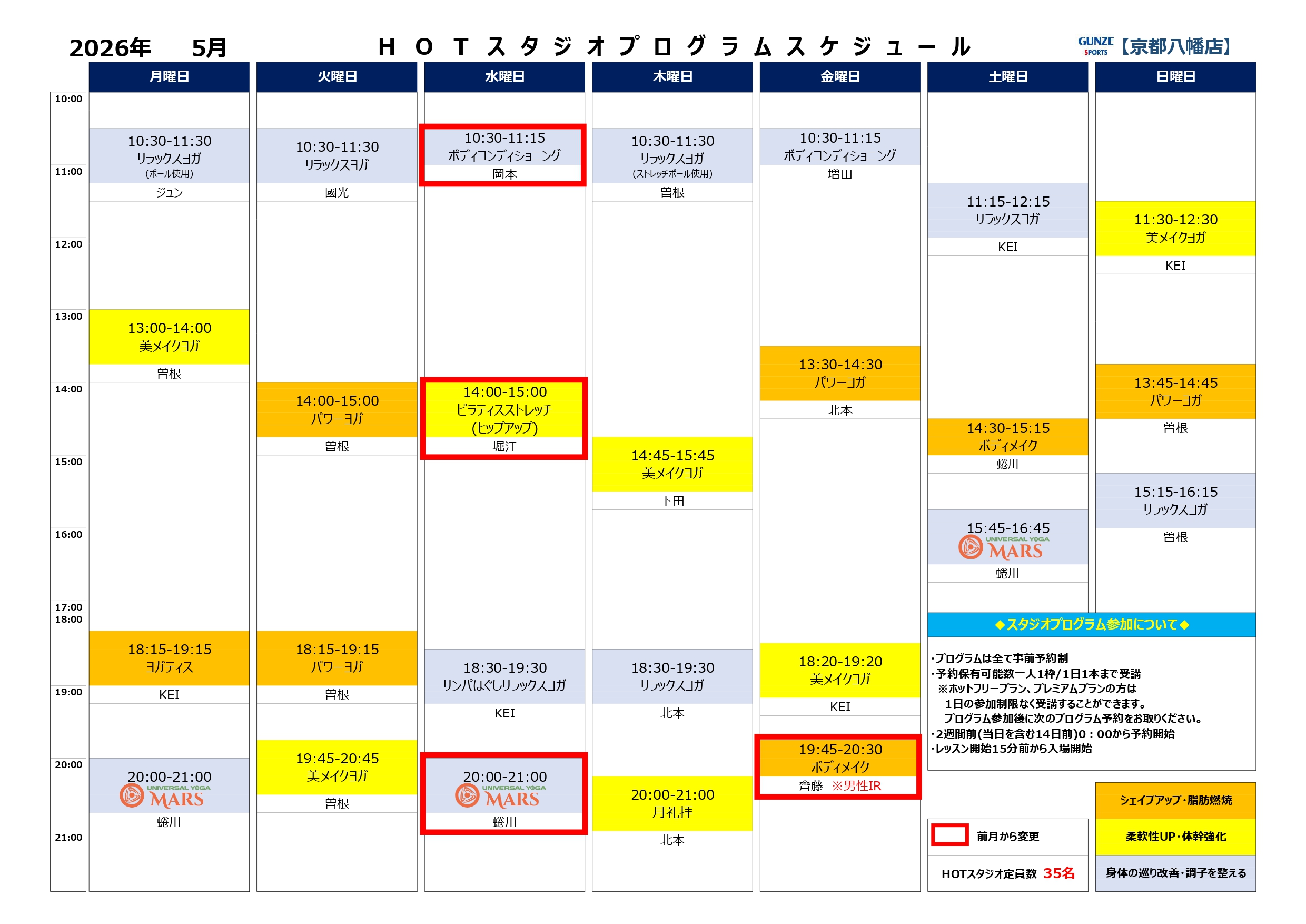 5月のプログラムにつきまして、一部内容の見直しを行っております。